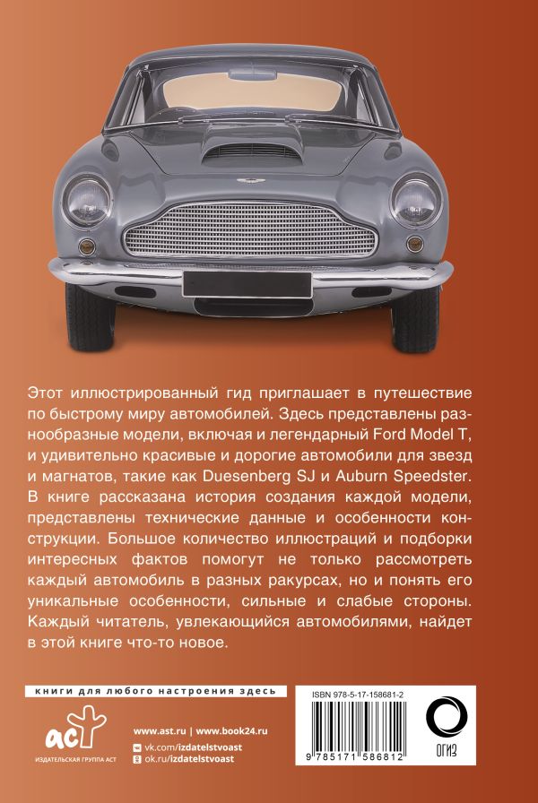 Этот иллюстрированный гид приглашает в путешествие по быстрому миру автомобилей. Здесь представлены разнообразные модели, включая и легендарный Ford Model T, и удивительно красивые и дорогие автомобили для звезд и магнатов, такие как Duesenberg SJ и Auburn Speedster. В книге рассказана история создания каждой модели, представлены технические данные и особенности конструкции. Большое количество иллюстраций и подборки интересных фактов помогут не только рассмотреть каждый автомобиль в разных ракурсах, но и понять его уникальные особенности, сильные и слабые стороны. Каждый читатель, увлекающийся автомобилями, найдет в этой книге что-то новое.