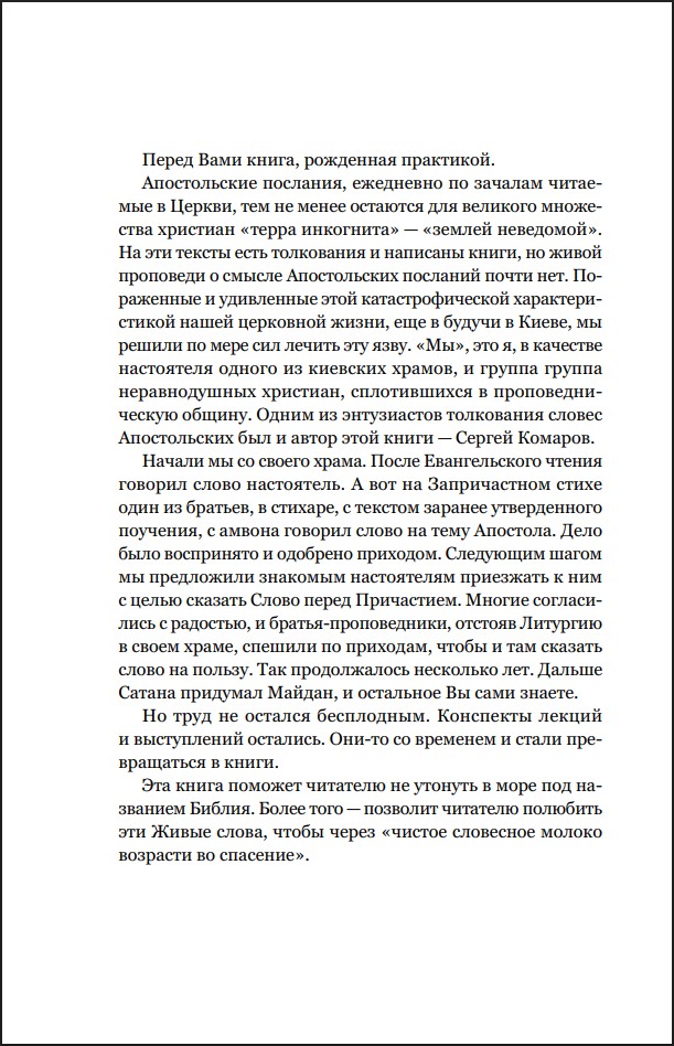 Она написана живым и доступным языком, понятным для широкой читательской аудитории. Сергею Комарову удается сочетать популярную манеру изложения с содержательной глубиной, в том числе благодаря обращению к толкованиям святых отцов Православной Церкви.