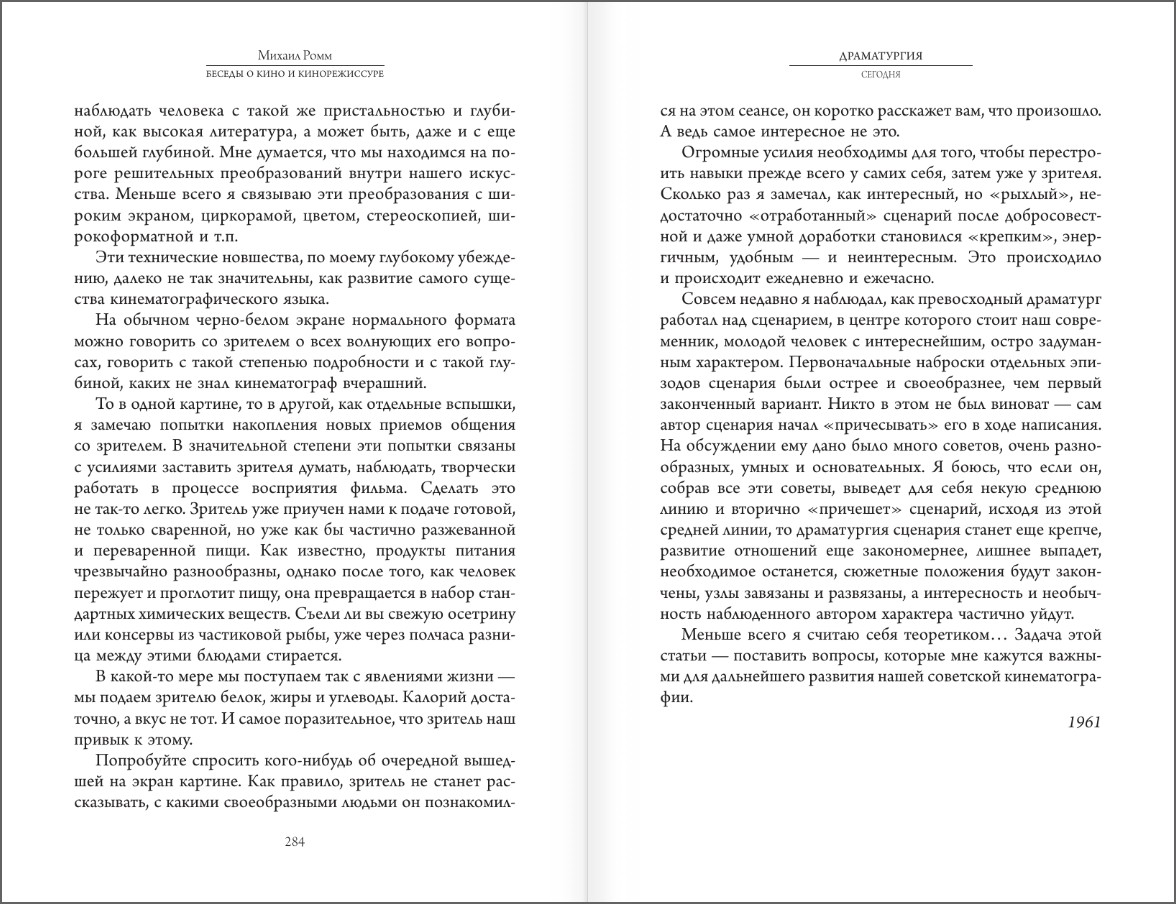 Ромм подробно анализирует собственные работы – от «Ленина в 1918 году» до «Девяти дней одного года», – вспоминает творческие встречи с Щукиным, Ваниным, Эйзенштейном, размышляет о природе образа, силе немого действия, опасности штампов и подлинной драматургии жизни.