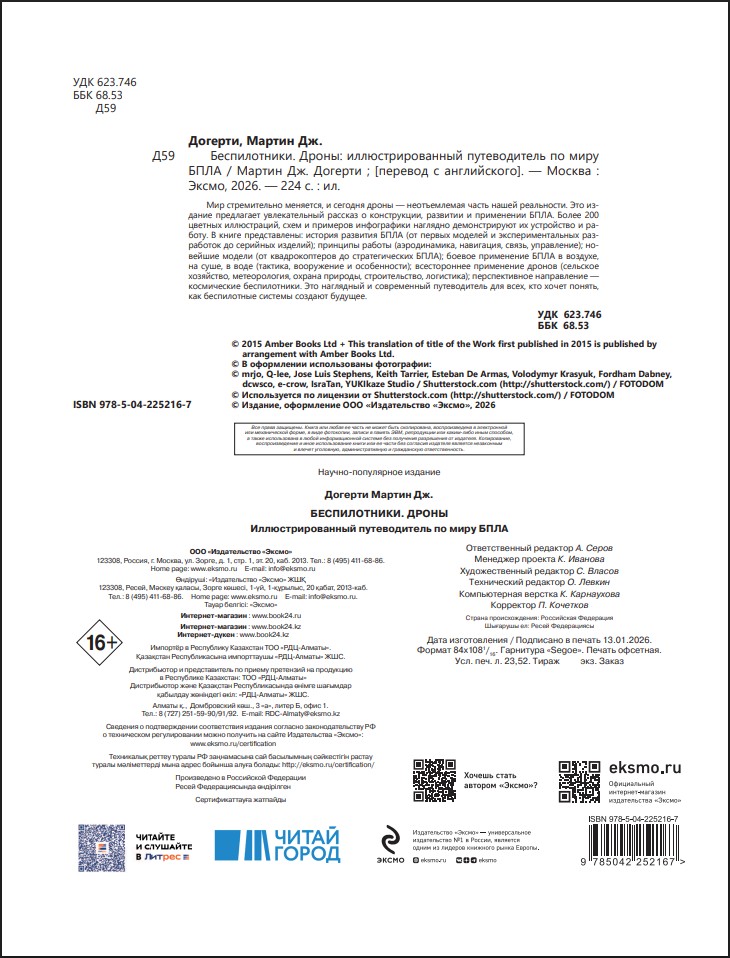 Мир стремительно меняется и сегодня дроны – неотъемлемая часть нашей реальности. Это издание предлагает увлекательный рассказ о конструкции, развитии и применении БПЛА. Более 200 цветных иллюстраций, схем и инфографики наглядно демонстрируют их устройство и работу.