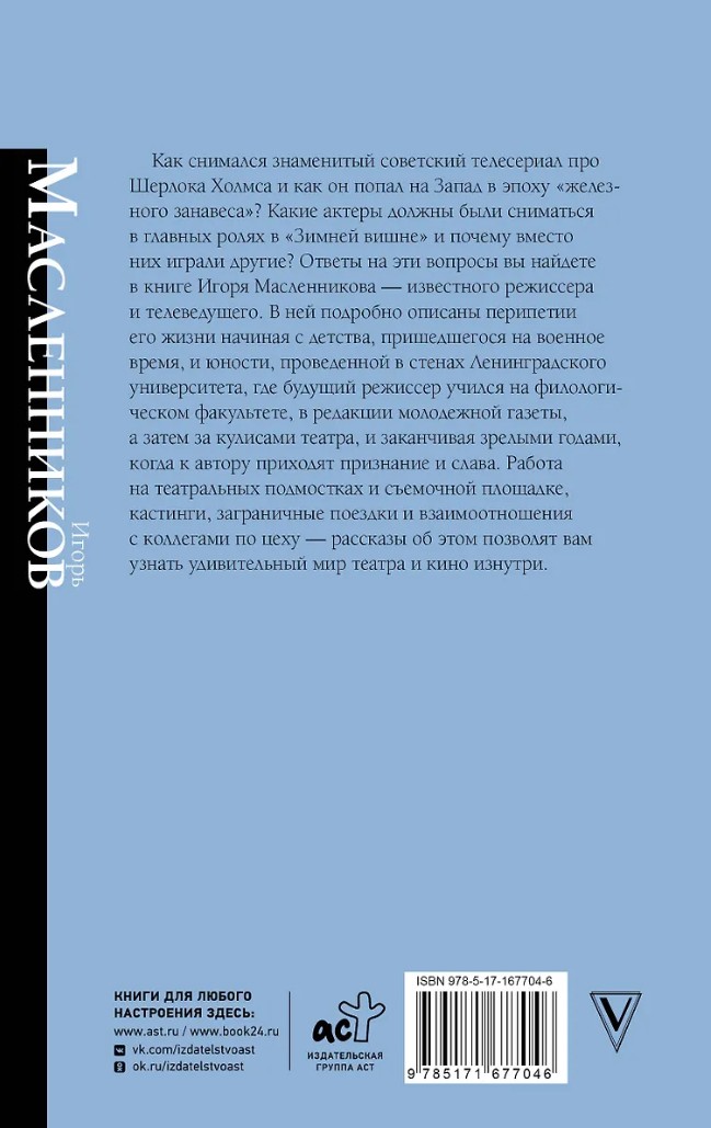 Ответы на эти вопросы вы найдете в книге Игоря Масленникова – известного режиссера и телеведущего. В ней подробно описаны перипетии его жизни начиная с детства, пришедшегося на военное время, и юности, проведенной в стенах Ленинградского университета, где будущий режиссер учился на филологическом факультете, в редакции молодежной газеты, а затем за кулисами театра, и заканчивая зрелыми годами, когда к автору приходят признание и слава.