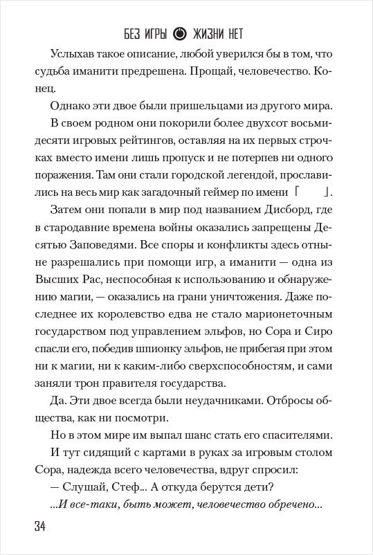 Второй том ранобэ Без игры жизни нет рассказывает о Соре и Сиро. Они – брат и сестра, хикикомори, нигде не работают и не учатся, но прославились на весь Интернет благодаря мастерству в играх.