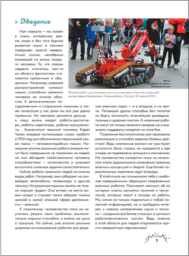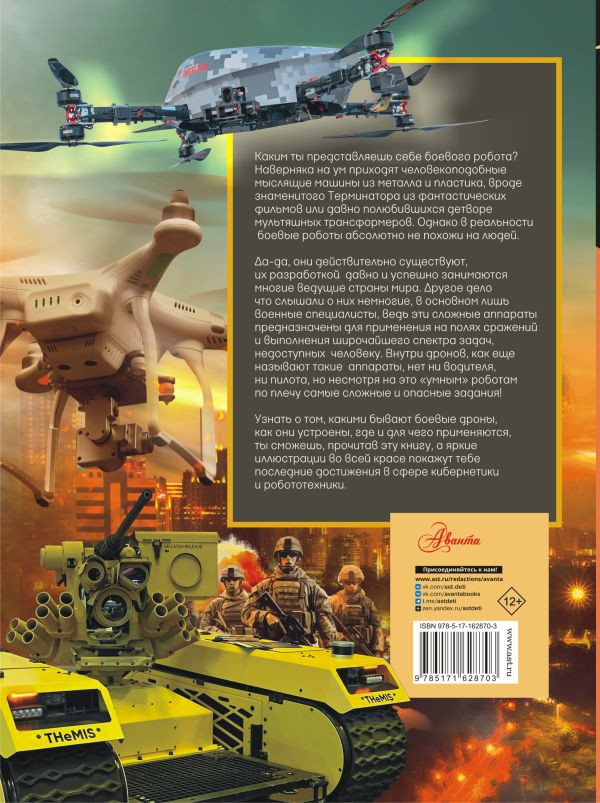 Эта книга расскажет тебе о самых современных боевых роботах на примере лучших моделей из разных стран, находящихся сейчас на вооружении многих армий и ежедневно выполняющих свои нелегкие миссии. Прочитав ее, ты узнаешь, что такое разведывательные и ударные беспилотники, какими бывают специальные и бронированные роботы, для чего и как они применяются, а яркие иллюстрации с описанием их особенностей и элементов конструкции помогут разобраться в их устройстве. Изучай, анализируй, сравнивай, и, возможно, совсем скоро ты тоже сможешь приобщиться к удивительному миру роботов в качестве их создателя или оператора. Ведь сегодня уже никто не сомневается, что будущее принадлежит высокотехнологичным «умным» машинам, которые умеют абсолютно всё – и даже немного больше!