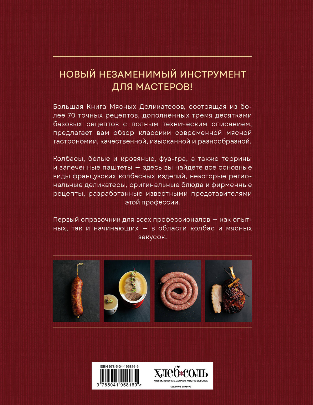 Одним из основных особенностей данной книги и ее большим преимуществом является авторский подход: нигде на ее страницах вам не удастся найти нитриты – ни грамма! Арно Николя, Фабьен Перон и Кристиан Сеги являются обладателями почетного звания «Лучшие работники Франции» в мясной промышленности.