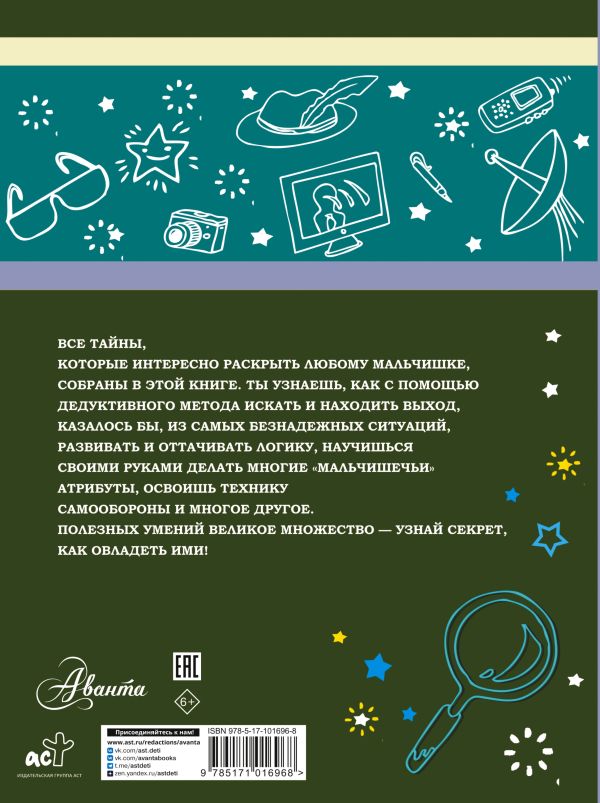 Хочешь прослыть среди друзей настоящим знатоком в самых важных «мальчишеских» вопросах? Тогда тебе нужно постигнуть некоторые секреты, без которых удивить их, увы, не получится. Как уметь за себя постоять и при этом оставаться галантным и воспитанным? Как работает детектор лжи? Как прочесть невидимое послание? Как зарядить батарейку и восстановить CD- и DVD-диски? Что такое азимут и как его вычислить? Как изготовить фоторобот? Как собственными руками сделать компас, телефон или часы? И, наконец, в чем же заключается секрет знаменитого дедуктивного метода? «Как сложно!» – воскликнешь ты. И будешь не прав! Благодаря этой прекрасно иллюстрированной книге ты справишься с любыми трудностями. Она, открыв все «мальчишеские» тайны, поможет тебе овладеть множеством полезных умений.