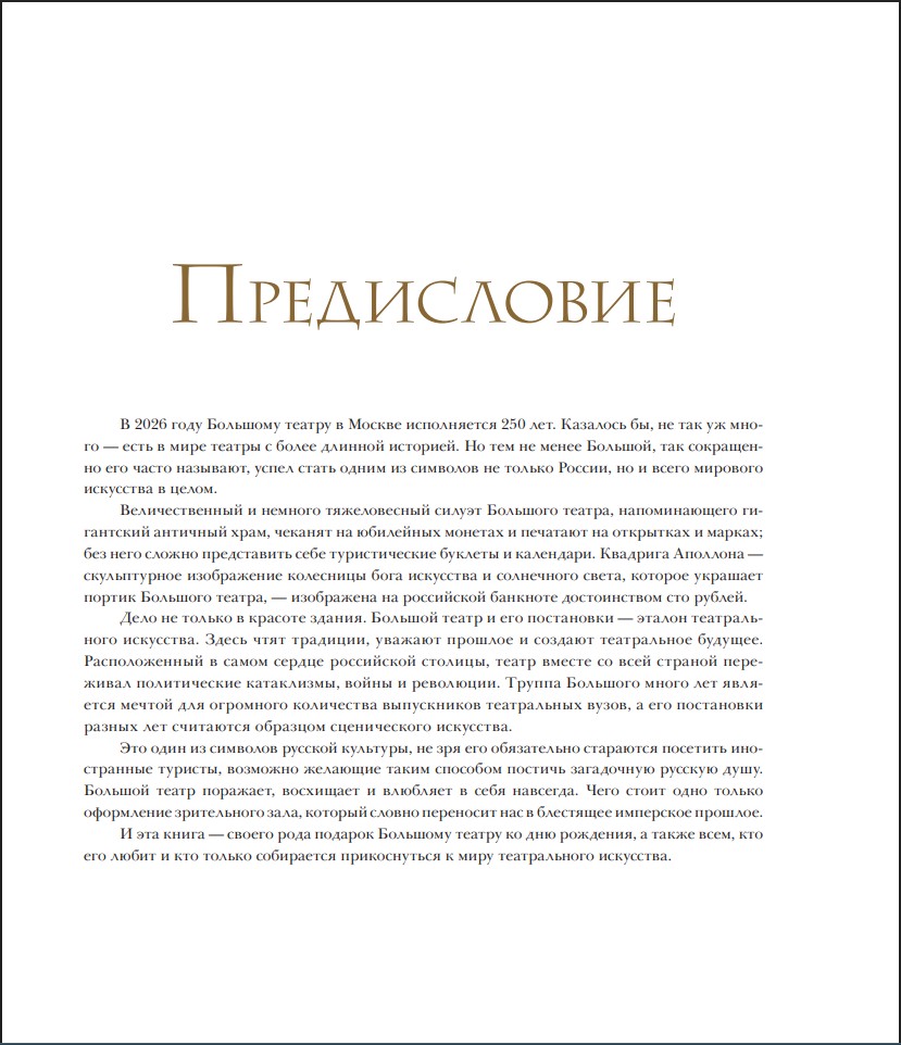 Большой театр сегодня – символ русской культуры, образец театрального искусства. В 2026 году у театра юбилей – ему исполняется 250 лет. Эта книга станет особенным подарком театру и всем, кто его любит.