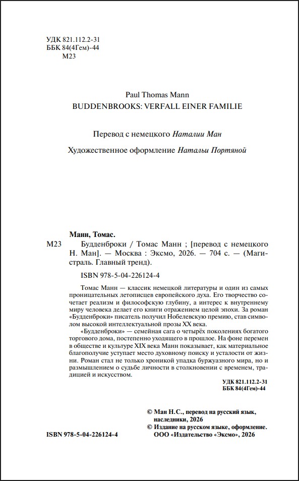 Описание книги Будденброки (серия Магистраль. Главный тренд):