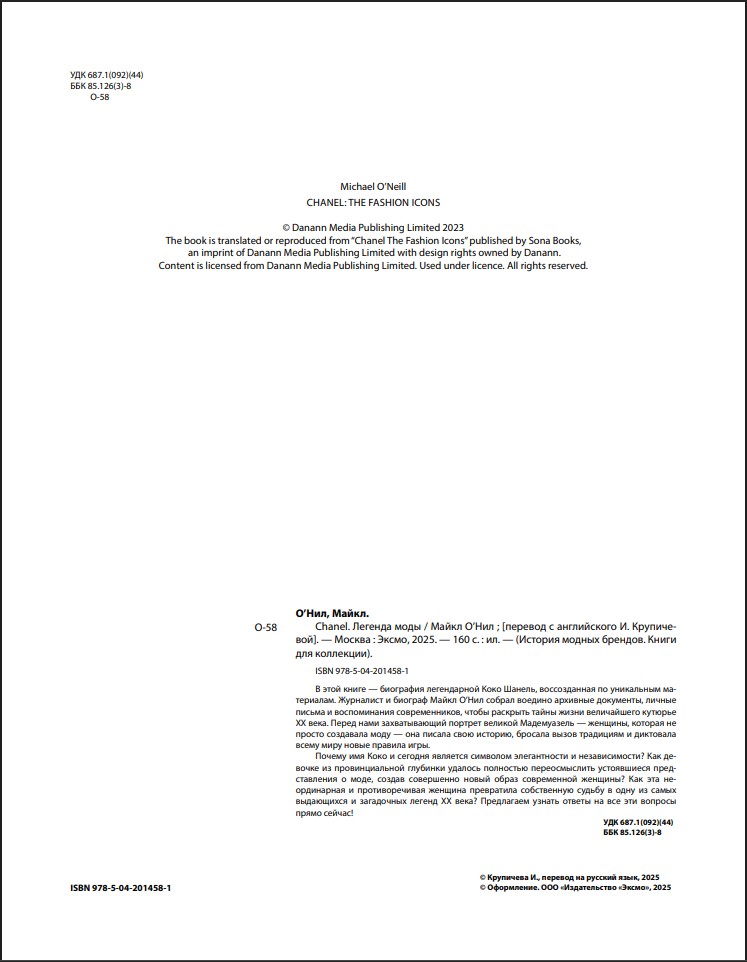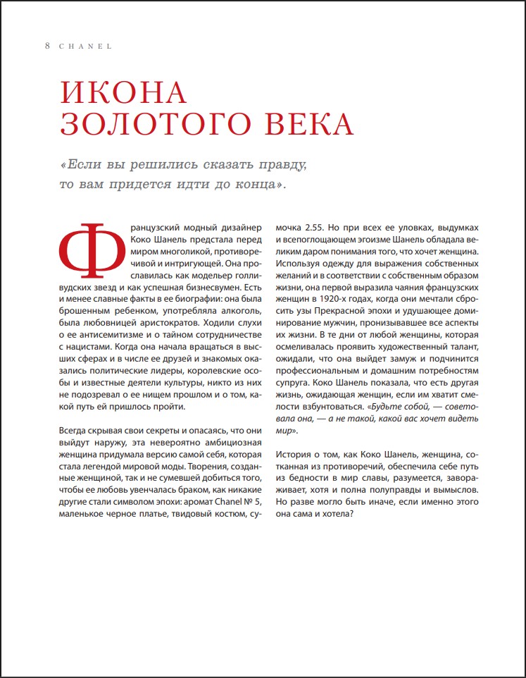 Мелованная бумага, редкие иллюстрации, стильная обложка, подарочное издание, эксклюзивные подробности создания культовых символов дома Chanel. Книга будет интересна всем, кто увлекается историей, интересуется миром моды и красоты.