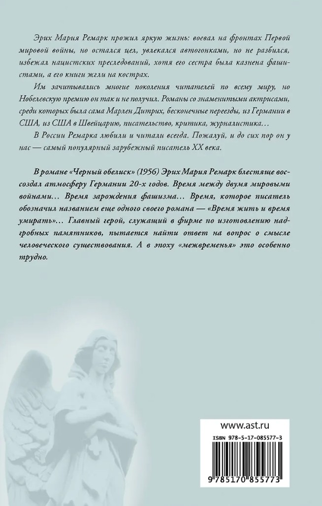 В романе «Черный обелиск» (1956) Эрих Мария Ремарк блестяще воссоздал атмосферу Германии 20-х годов. Время между двумя мировыми войнами… Время зарождения фашизма…