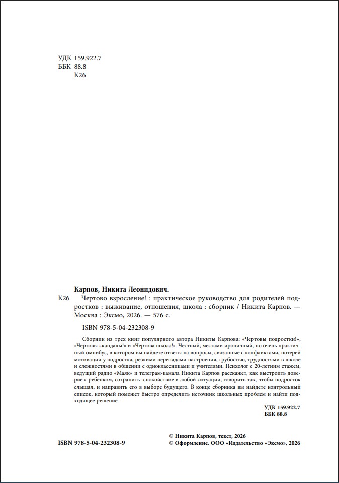 Если ваш подросток хлопает дверями, плохо учится и отвергает любые советы – этот сборник из трех книг для вас. Честный, отчасти смешной, но очень полезный омнибус спасет ваши нервные клетки и поможет вернуть контакт с подростком. В него вошли: «Чертовы подростки!», «Чертовы скандалы!» и «Чертова школа!» с суммарным тиражом более 100 000 экземпляров.