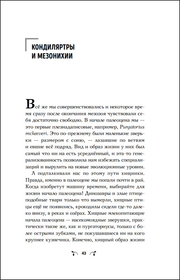 «Чудища сопровождали наше бытиё во все времена. Но, с другой стороны, выжившие после их пиршеств каждый раз оказывались самыми быстрыми, самыми ловкими, самыми умными. Чудовища создали наши руки-ноги, наши мозги и орудийную деятельность.