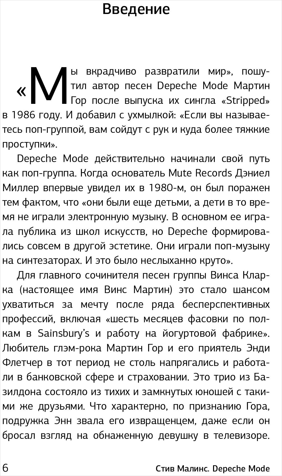 Оставить отзывНаписанная в сотрудничестве с музыкантами, эта биография рассказывает подлинную историю группы – причудливую, веселую, экстремальную и порой разрушительную. Она повествует о безрассудном и ярком Дэйве Гаане, скромном и искусном Мартине Горе, прагматичном и бескомпромиссном Энди Флетчере.