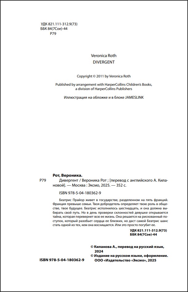 Беатрис Прайор живет в государстве, разделенном на пять фракций. Фракция превыше семьи. Твоя добродетель определяет твою роль в обществе, твое будущее. Беатрис исполнилось шестнадцать, и она должна выбирать свой путь.