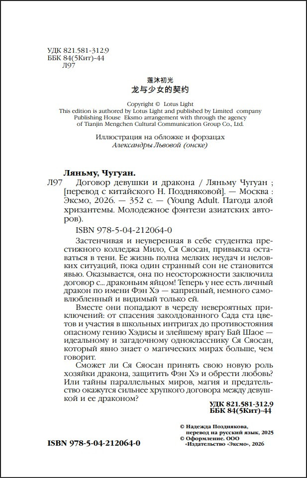 Сможет ли Ся Сяосан принять свою новую роль хозяйки дракона, защитить Фэн Хэ и обрести любовь? Или тайны параллельных миров, магия и предательство окажутся сильнее хрупкого договора между девушкой и ее драконом?