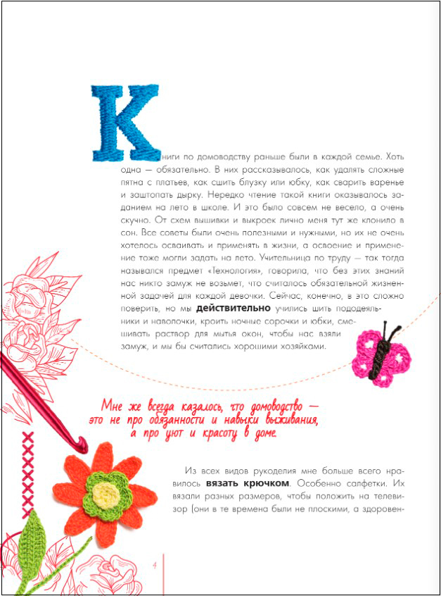 Вы точно такого не ожидали. Известная писательница Маша Трауб написала для детей, а также их мам и бабушек, энциклопедию по домоводству. Вязание, шитье, укладывание плитки, рисование на стенах и мебели, создание разнообразных поделок и нужных мелочей из всего, что под рукой. А еще прекрасные Машины истории, которые дарят всем атмосферу уютного домашнего очага, непреходящие семейные ценности, восхищение детской фантазией и, конечно, память детства… Откройте книгу и на вас повеет теплом и радостью встречи, ароматами чудесного дома, незабываемыми детскими ощущениями. И так захочется передать те умения и навыки, что получены от бабушек, следующему поколению. Ведь они тоже будут строить и вести свои дома, а учиться этому лучше в юном возрасте.