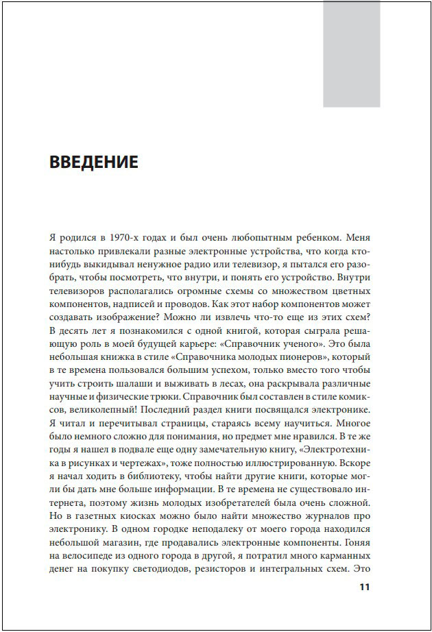 Третье издание самоучителя поможет освоить электронику всем, кто хочет разобраться в ней раз и навсегда! В подробных инструкциях и простых иллюстрациях автор объясняет, как устроен мир электронных схем, тока и напряжения. Реле, диоды, транзисторы, регистры – все это станет вашими верными друзьями после знакомства с этой книгой.