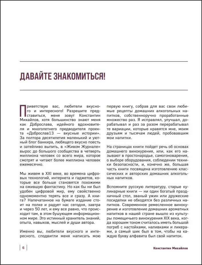 В этой книге популярный блогер Константин Михайлов (Доброслав13) обстоятельно и подробно расскажет о процессе производства качественного прозрачного самогона, а затем даст рецепты настоек, наливок и ликеров на его основе. Фруктово-ягодные, ореховые, перцовые – вы сможете приготовить напиток на любой вкус: и для дружеской мужской посиделки, и для милых дам.