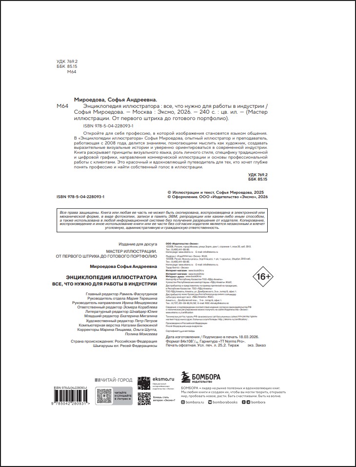 Погрузитесь в мир, где каждый штрих имеет смысл, а изображение становится полноценным языком общения. «Энциклопедия иллюстрации» Софьи Мироедовой – это книга, которая не просто рассказывает о профессии, а помогает почувствовать ее изнутри.