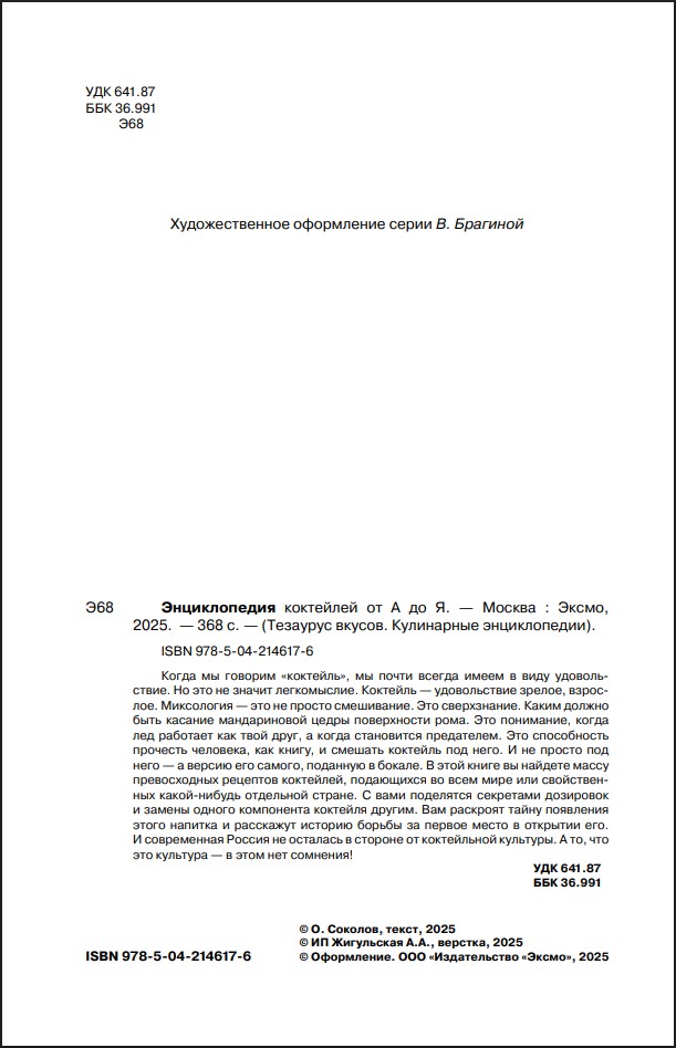 Ведь, как я уже говорил, коктейль – это не только про вкус. Это про память. Про жест. Про ритм. Про человека. И именно поэтому он заслуживает отдельной книги – о нем самом, его истории, технике, ингредиентах, ритуалах и культуре. Книги, которую вы держите в руках».