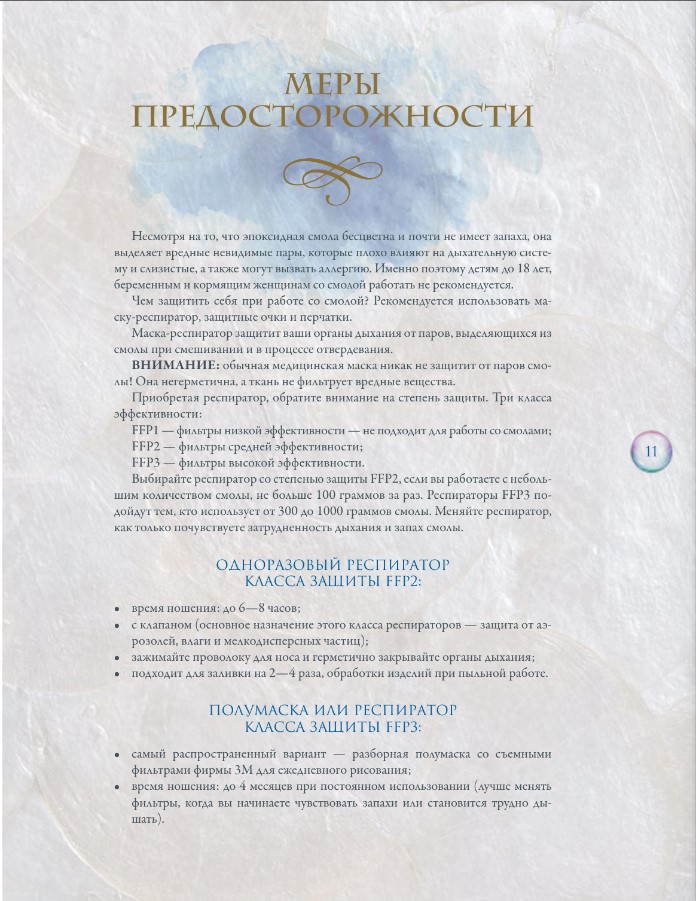 - советы по работе с эпоксидной смолой и все необходимые меры предосторожности;