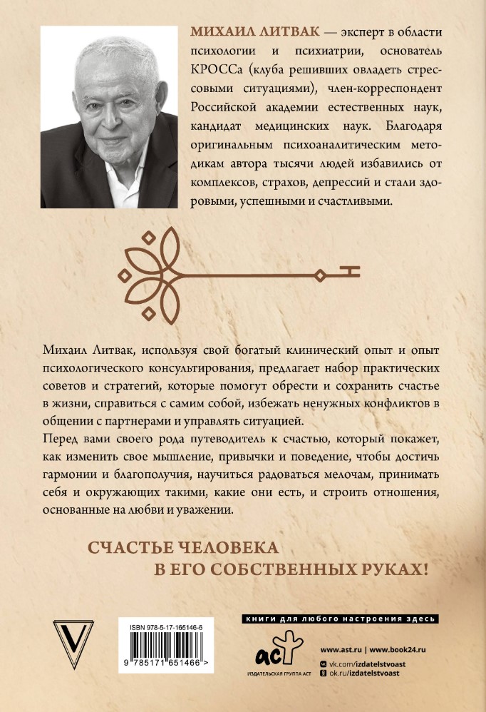Михаил Литвак, используя свой богатый клинический опыт и опыт психологического консультирования, предлагает набор практических советов и стратегий, которые помогут обрести и сохранить счастье в жизни, справиться с самим собой, избежать ненужных конфликтов в общении с партнерами и управлять ситуацией.