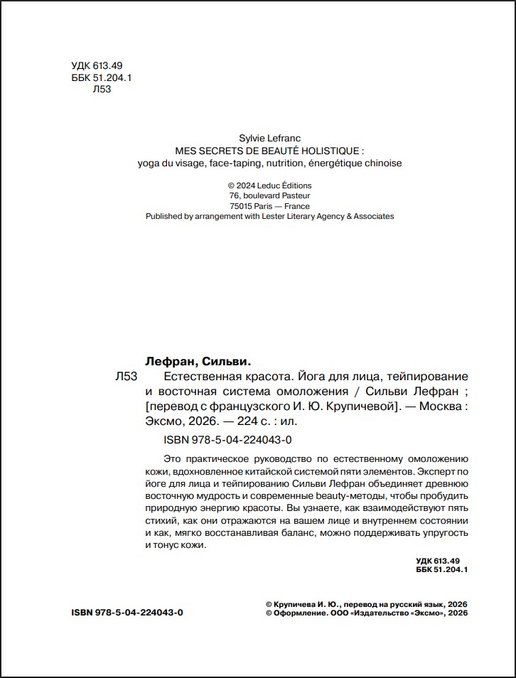 Это практическое руководство по естественному омоложению кожи, вдохновленное китайской системой пяти элементов. Эксперт по йоге для лица и тейпированию Сильви Лефран объединяет древнюю восточную мудрость и современные beauty-методы, чтобы пробудить природную энергию красоты.