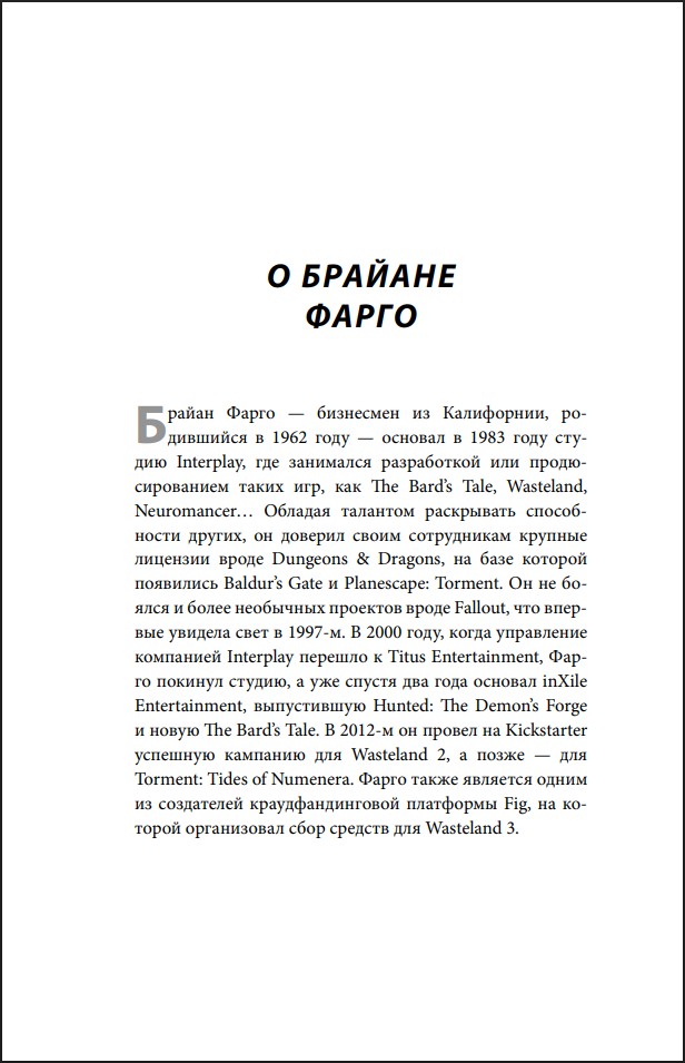 «Я горжусь своей связью с такой культовой игрой, как Fallout, – игрой, вместе с которой фанаты росли и открывали для себя другой мир». – Брайан Фарго, сооснователь Interplay Entertainment