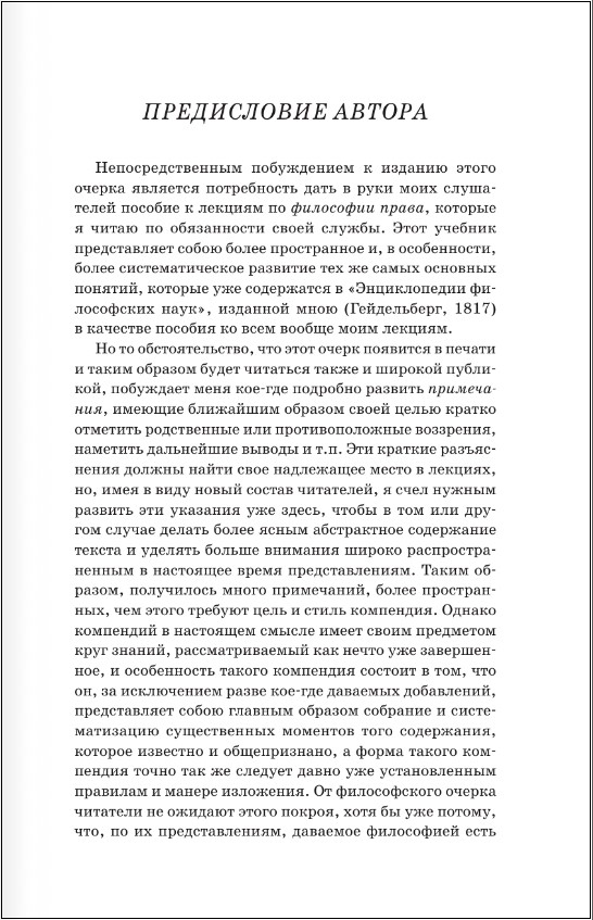 Оставить отзыв«Философия права» – работа всемирно известного немецкого философа Георга Вильгельма Фридриха Гегеля (1770-1831), которая является заключительной частью «Энциклопедии философских наук». В этой работе Гегель излагает свою теорию справедливости и рассматривает различные аспекты правовой системы, такие как законодательство, судебные решения и правовые институты. Он обсуждает вопросы, связанные с правами человека, свободой и равенством, а также с ролью государства в обеспечении этих ценностей. По утверждению Гегеля право и государство являются необходимыми условиями для развития личности и общества, и они должны быть гармонизированы для достижения истинного прогресса.