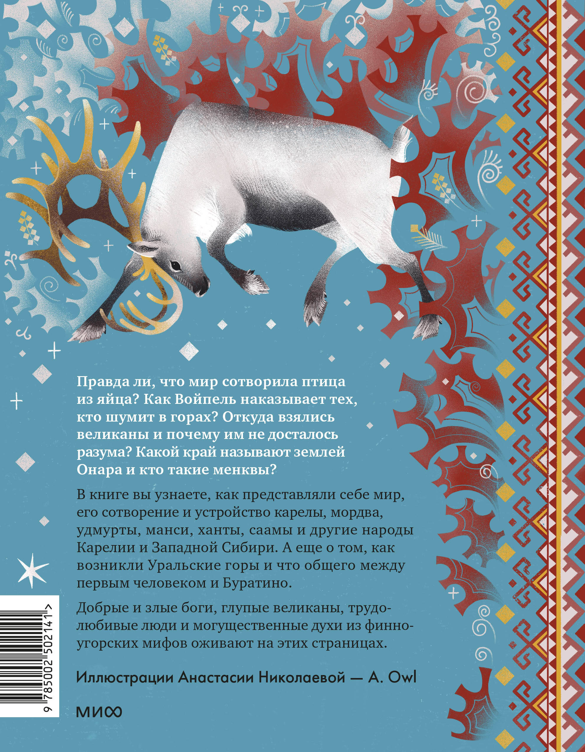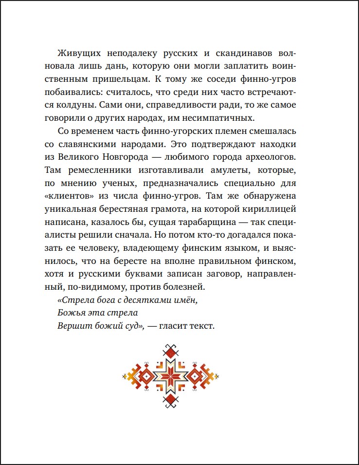 Книга из иллюстрированной серии «Мифы для детей» знакомит с легендами финно-угорских народов – карелов, мордвы, удмуртов, манси, хантов, саамов и других народов от Карелии до Западной Сибири.