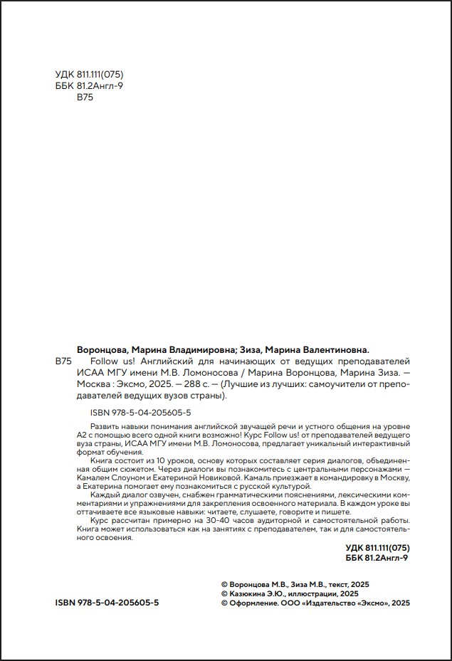 Описание книги Follow us! Английский для начинающих от ведущих преподавателей ИСАА МГУ:
