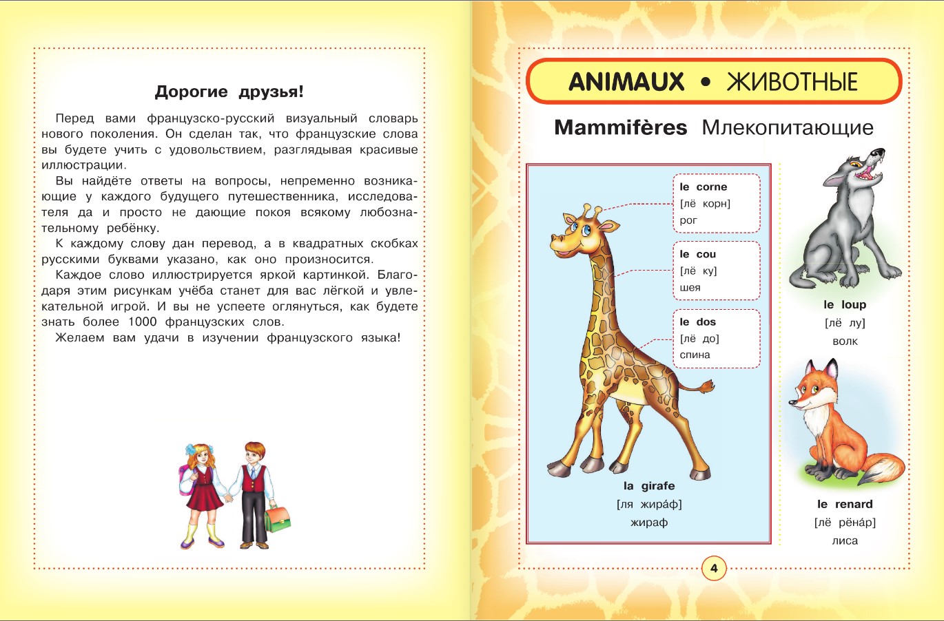 В книге содержится около 1000 цветных иллюстраций, благодаря которым ребёнок будет легче усваивать материал. Психологи давно заметили, что современные дети лучше воспринимают информацию через визуальные образы. Красочные иллюстрации способствуют включению у ребенка ассоциативного запоминания. Благодаря этому дети будут овладевать новой французской лексикой увлечённо и легко, воспринимая это больше как игру, нежели как учебу.