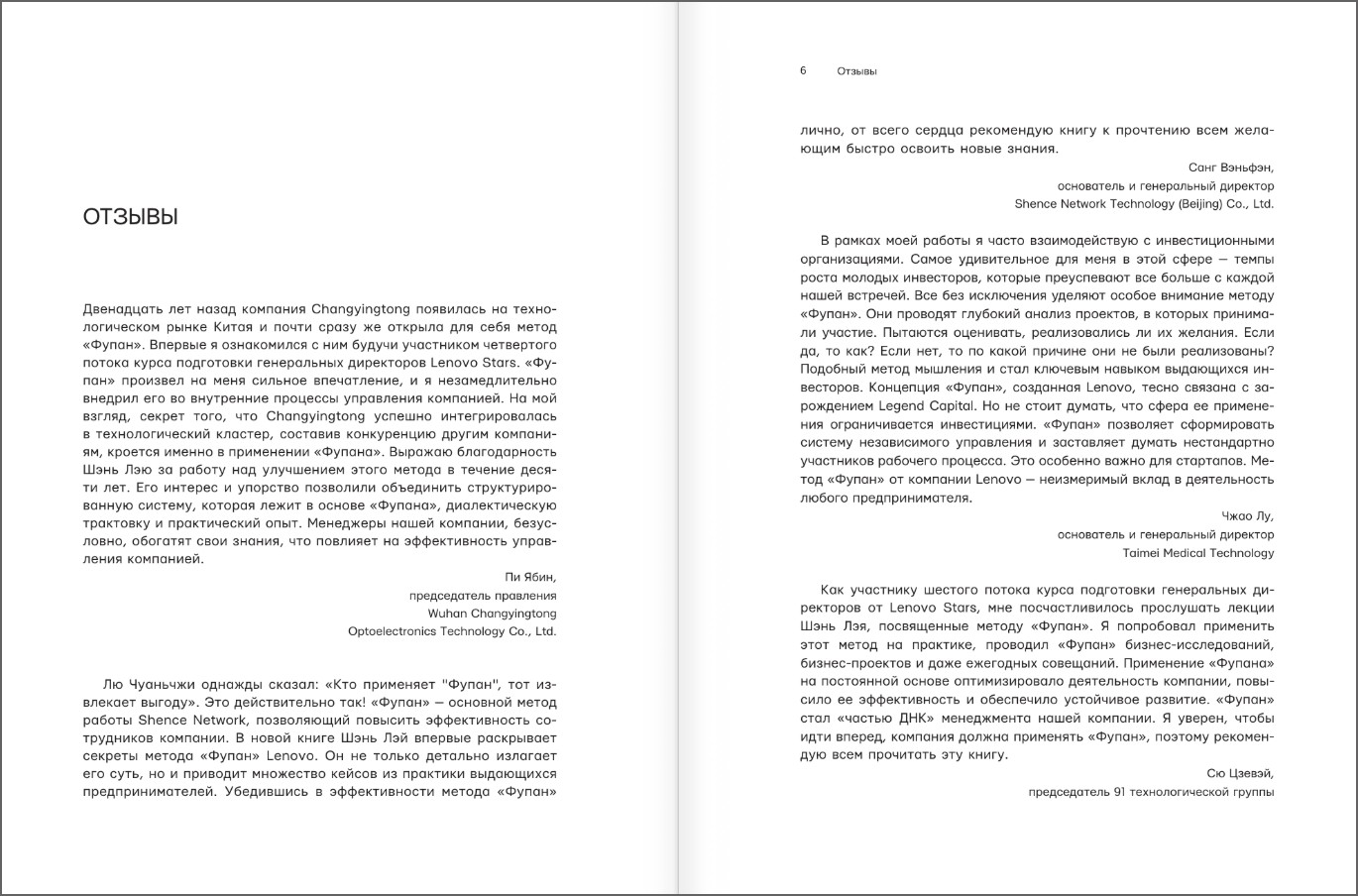 Шэнь Лэй, один их ведущих разработчиков метода «Фупан», в своей книге «Фупан: пять принципов эффективного управления» анализирует примеры из практики Lenovo Group и объясняет, как данный метод способствует когнитивной интеграции и оптимизации решений, уделяя особое внимание решению типичных управленческих задач, таких как согласование целей и оценка результатов.