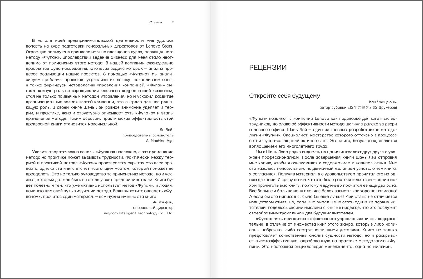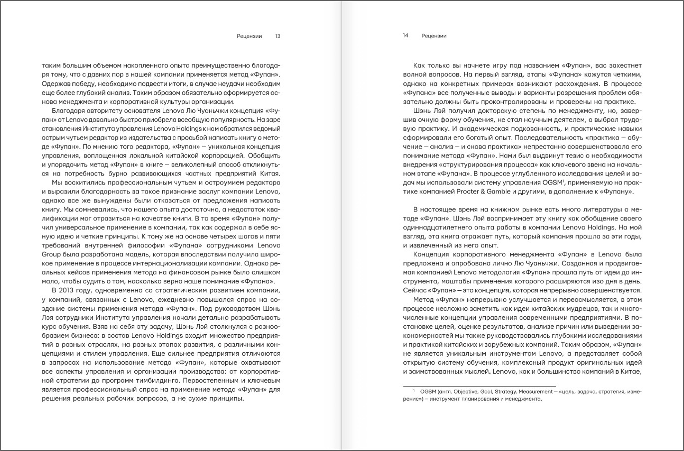 Он позволяет сотрудникам оценивать работу компании, анализировать причины ее успеха и неудач и вносить коррективы. Lenovo Group успешно интегрировала метод «Фупан» в систему управления компанией и последовательно применяет его на практике.