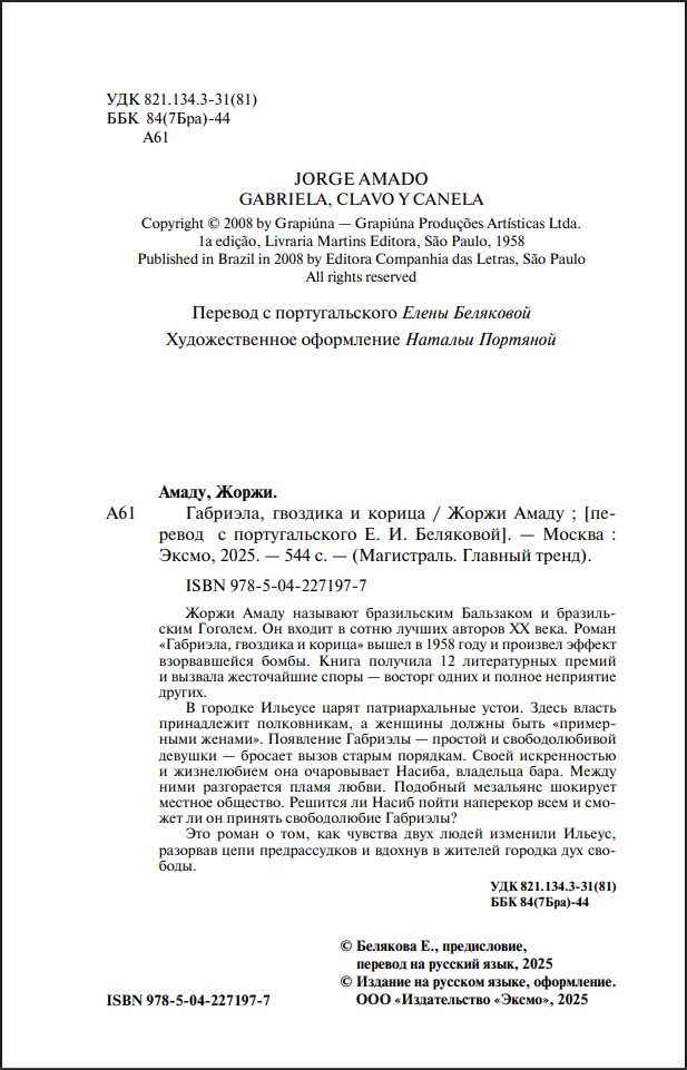 Описание книги Габриэла, гвоздика и корица: