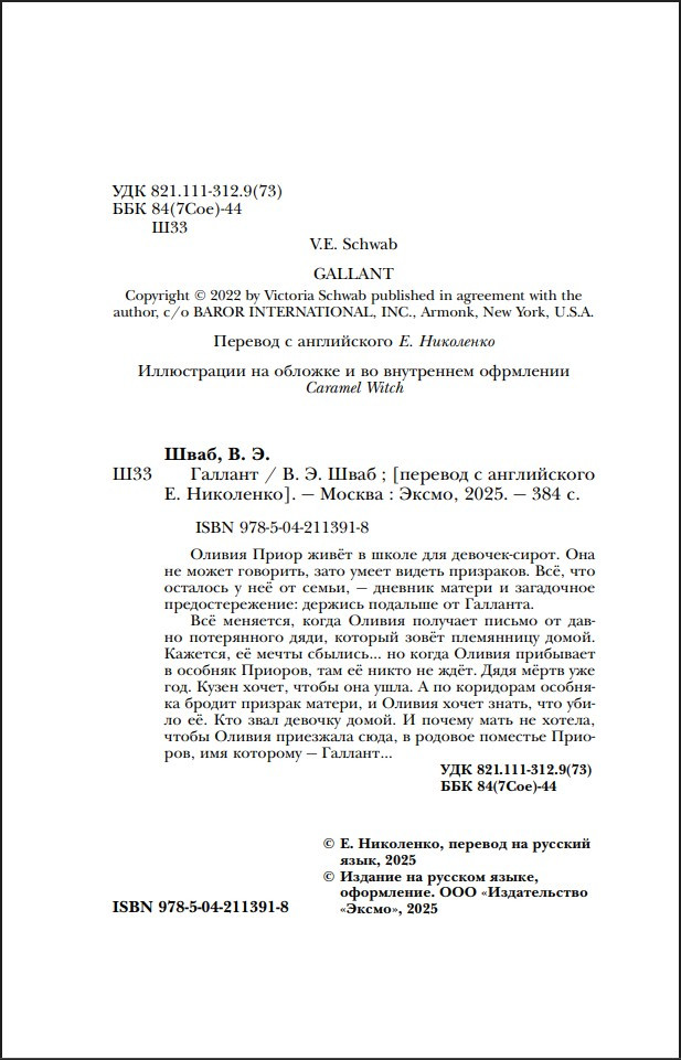 Дядя мёртв уже год. Кузен хочет, чтобы она ушла. А по коридорам особняка бродит призрак матери, и Оливия хочет знать, что убило её. Кто звал девочку домой. И почему мать не хотела, чтобы Оливия приезжала сюда, в родовое поместье Приоров, имя которому – Галлант…