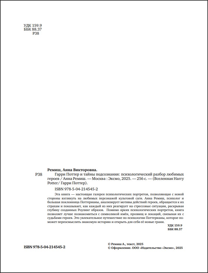 Анна Ремиш, психолог и преданная поклонница вселенной Гарри Поттера, рассматривает мотивы поведения любимых персонажей разрабатывает полные психологические портреты «золотого трио», их друзей и врагов: