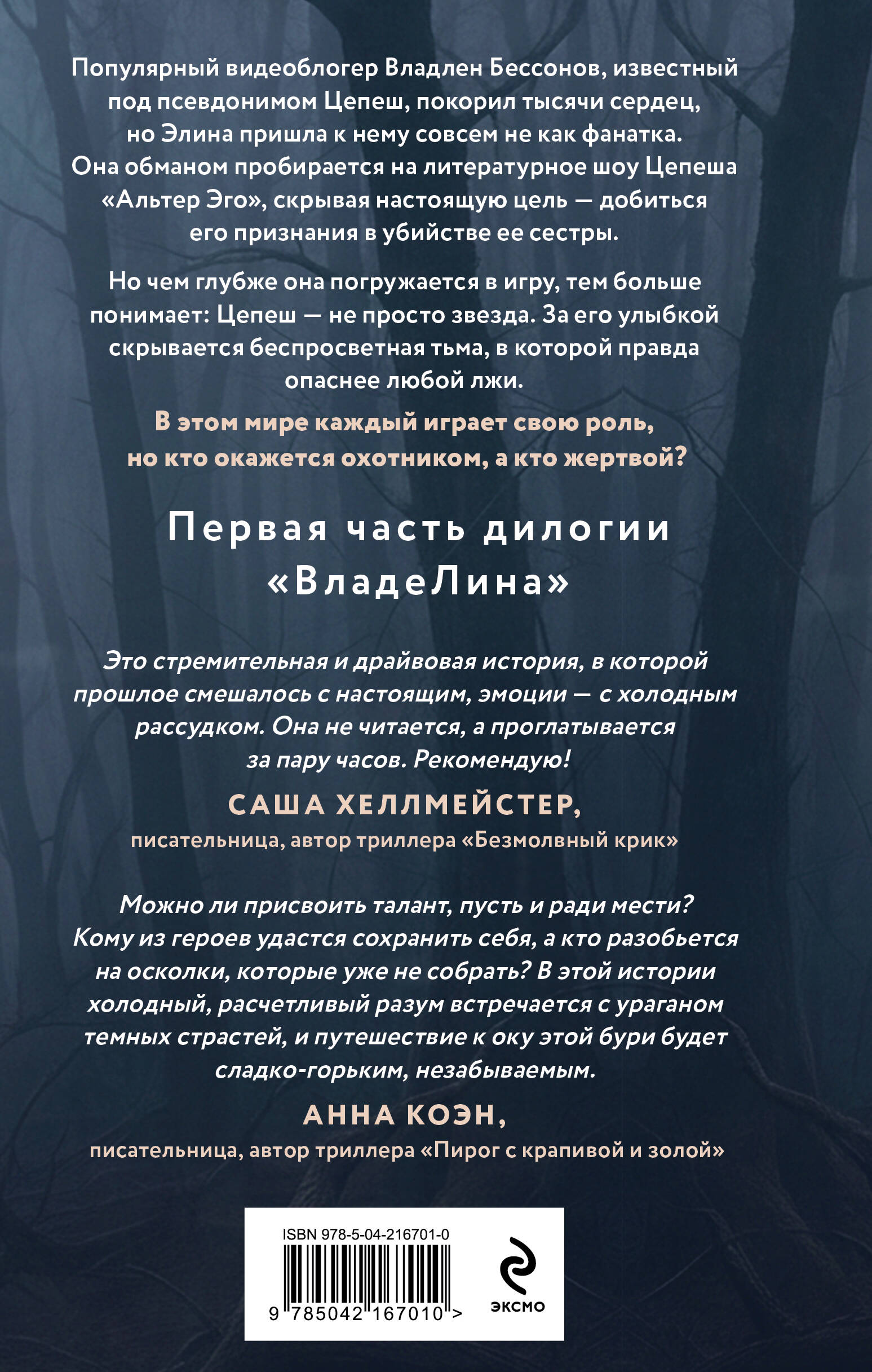 Популярный видеоблогер Владлен Бессонов, известный под псевдонимом Цепеш, покорил тысячи сердец, но Элина пришла к нему совсем не как фанатка. Она обманом пробирается на литературное шоу Цепеша «Альтер Эго», скрывая настоящую цель – добиться его признания в убийстве своей сестры.