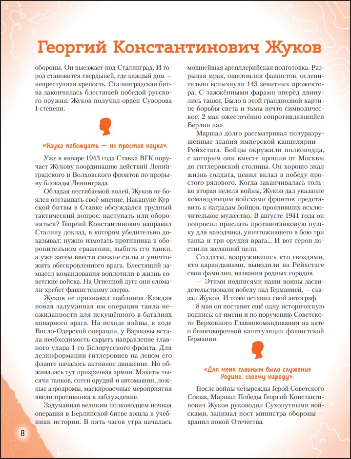 Издание предназначено для среднего школьного возраста, однако будет интересно и взрослым, а также станет неповторимым подарком по любому поводу для всех, кто любит Россию и гордится ею. Читайте всей семьёй и узнавайте всё самое интересное о великих людях нашей страны!