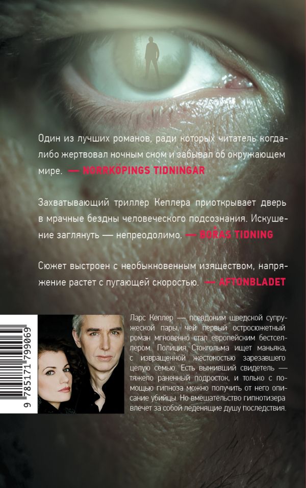 Первый шведский роман, с колоссальным успехом проданный за рубеж еще до публикации в Швеции, «Гипнотизер» положил начало захватывающей детективной серии о расследованиях комиссара уголовной полиции Йоны Линны.