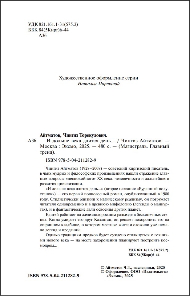 «И дольше века длится день...» (второе название «Буранный полустанок») – его первый полновесный роман, опубликованный в 1980 году. Стилистически близкий к магическому реализму, он погружает читателя одновременно и в древнюю мифологию (легенды о манкуртах), и в фантастические дали освоения других планет.
