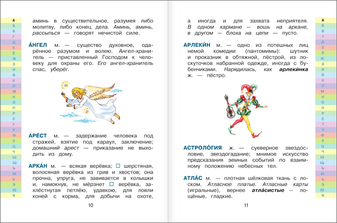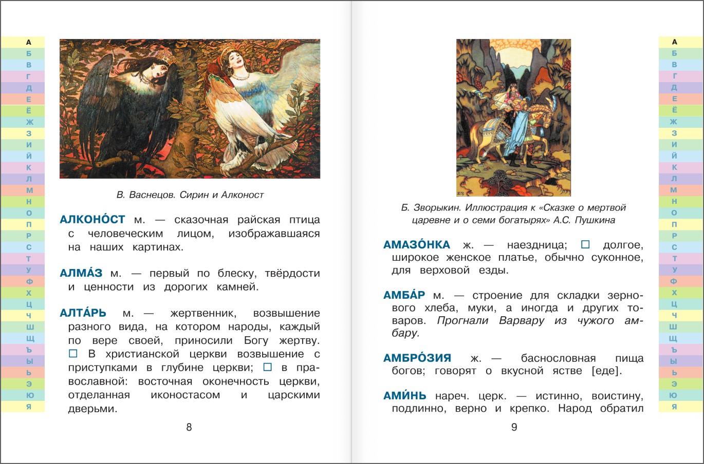 Яркие красочные иллюстрации, в том числе уже знакомые детям из сказок, способствуют лёгкому и надёжному запоминанию значений изучаемых слов.