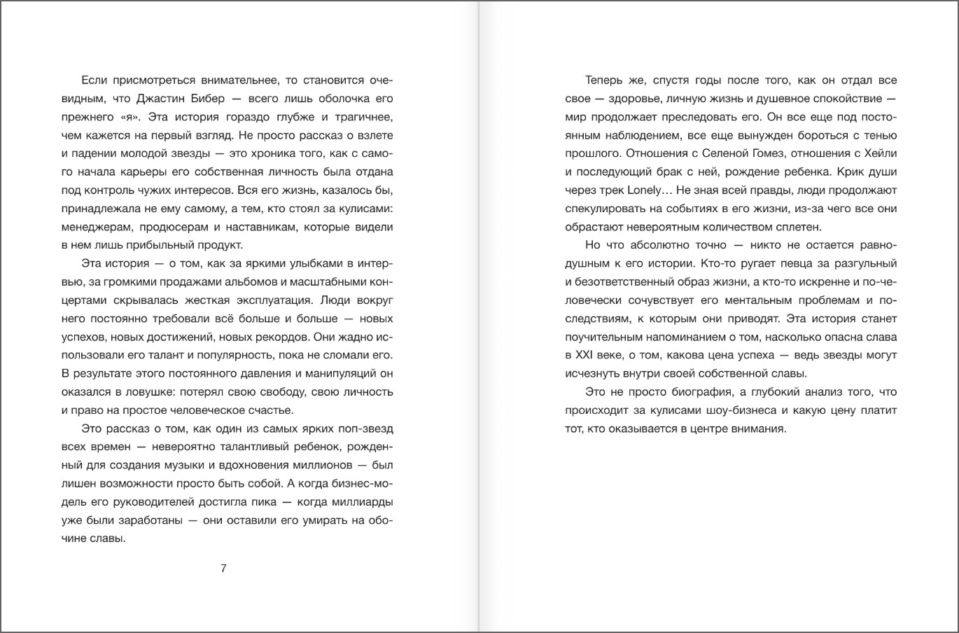 Эта книга – попытка объективно рассказать о жизни Джастина, от самого детства и до наших дней. В работу было вложено огромное количество усилий: собраны материалы из различных источников, охватывающих период с 2009 по 2025 год.