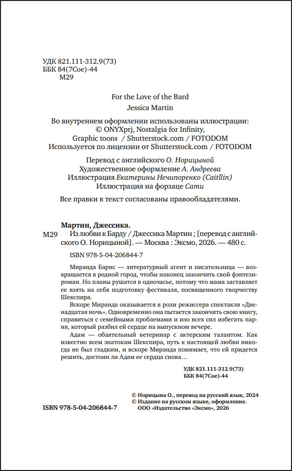 Она писательница, он ветеринар; второй шанс; здоровые отношения; исцеляющая любовь; маленький городок с гиперфиксацией на Шекспире; юмор и очень смешные шутки. «Из любви к Барду» – история о том, что настоящая любовь от тебя никогда не уйдет.