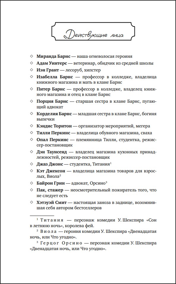 Миранда Барнс – литературный агент и писательница возвращается в родной город, чтобы наконец закончить свой фэнтези-роман. Но планы рушатся в одночасье, потому что мама заставляет ее взять на себя подготовку фестиваля, посвященного творчеству Шекспира.