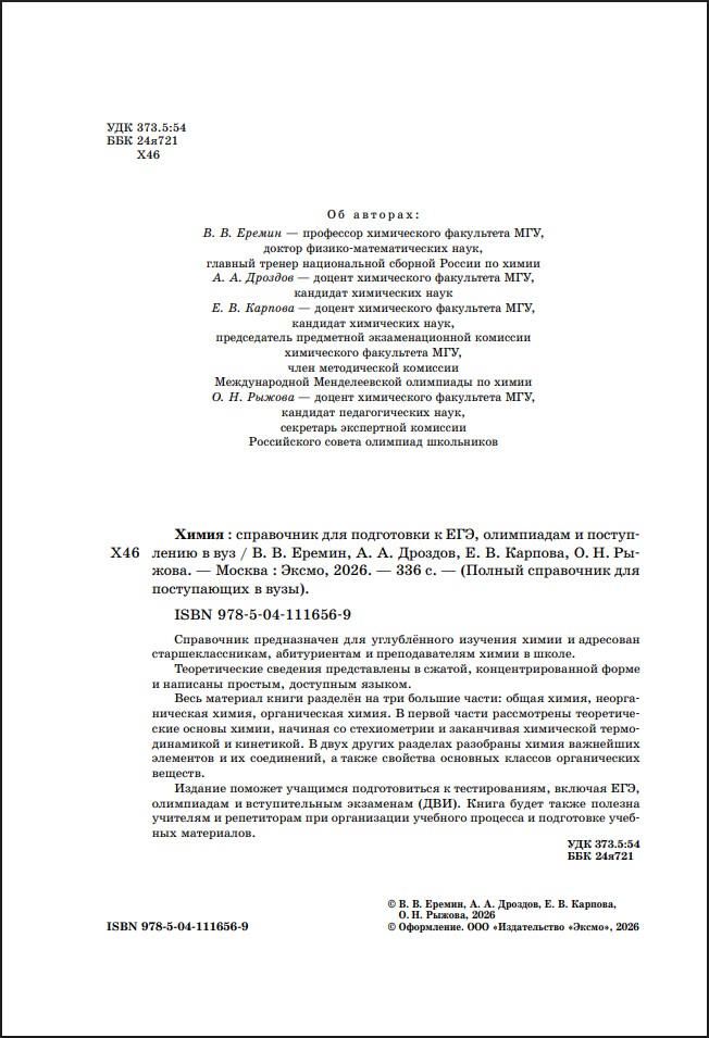 Справочник адресован тем, кто хочет овладеть химией на углубленном уровне, систематизировать знания и быть готовыми к любым экзаменационным испытаниям.