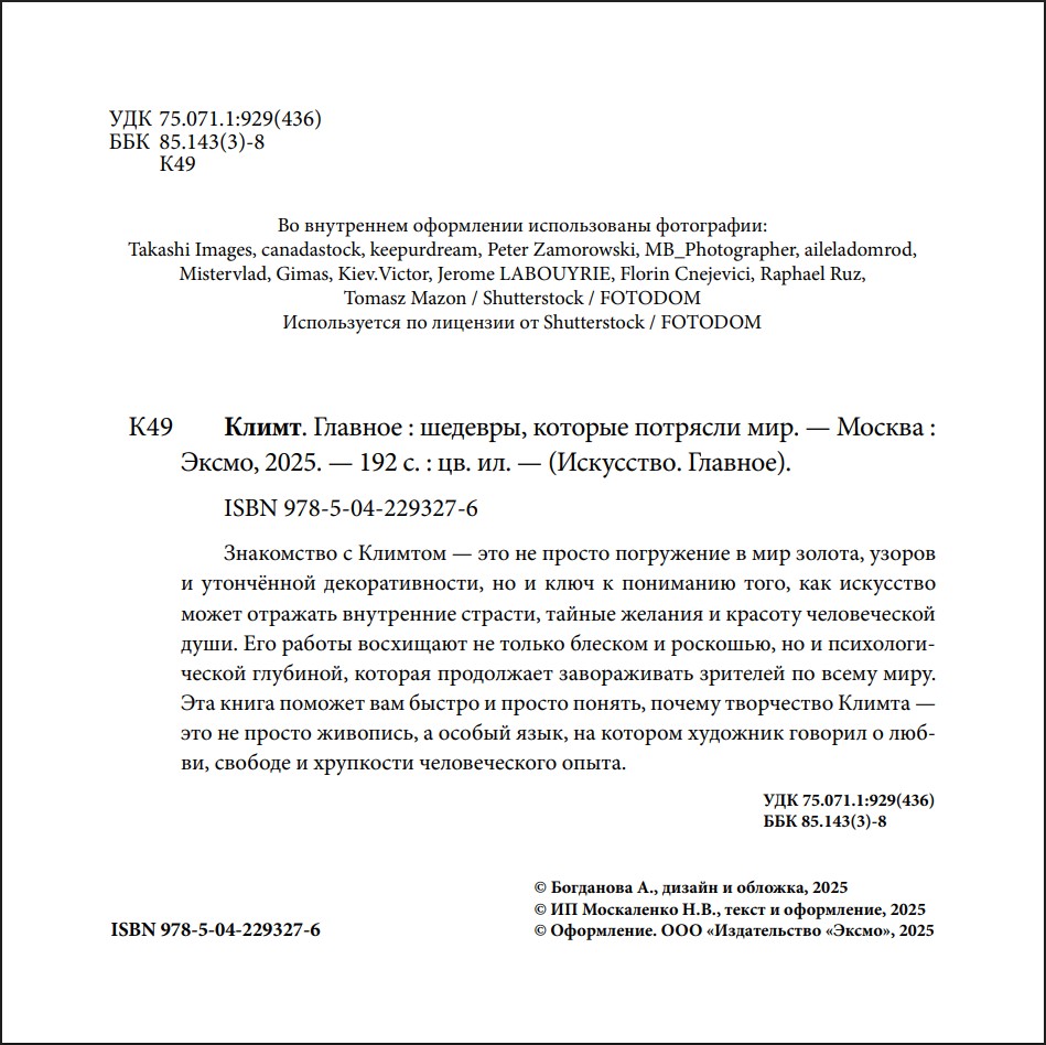 Оставить отзывВ этом компактном альбоме на плотной мелованной бумаге собрано всё главное о жизни и творчестве Густава Климта – художника, чьи работы стали символом эпохи модерна и до сих пор восхищают своей утончённостью, смелостью и загадочной красотой. Его полотна, наполненные золотом, декоративностью и психологической глубиной, изменили представления о том, каким может быть искусство.