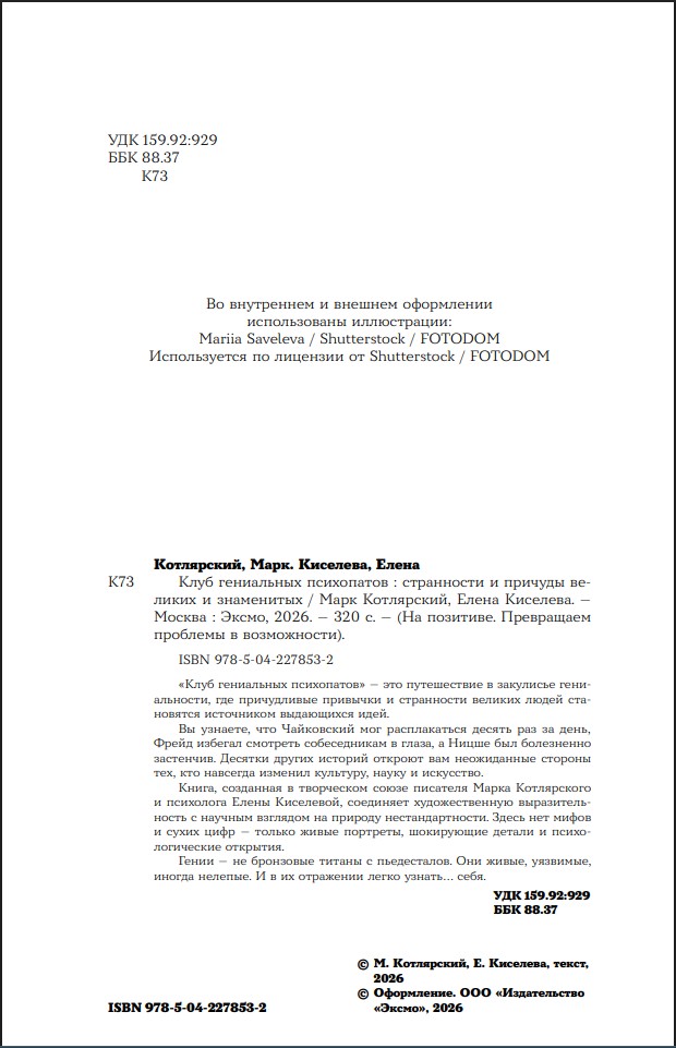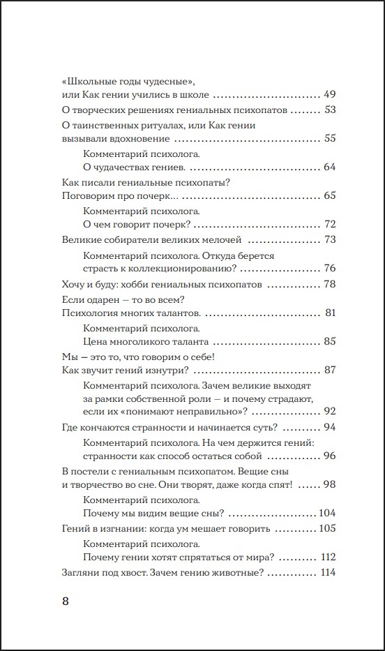 Эта книга – коллекция удивительных историй о гениях, чьи «странности» становились источником вдохновения и великих открытий. После каждой главы – профессиональный разбор от кандидата психологических наук Елены Киселевой, раскрывающий, как внутренние конфликты и травмы порождают уникальные таланты и нестандартное мышление.