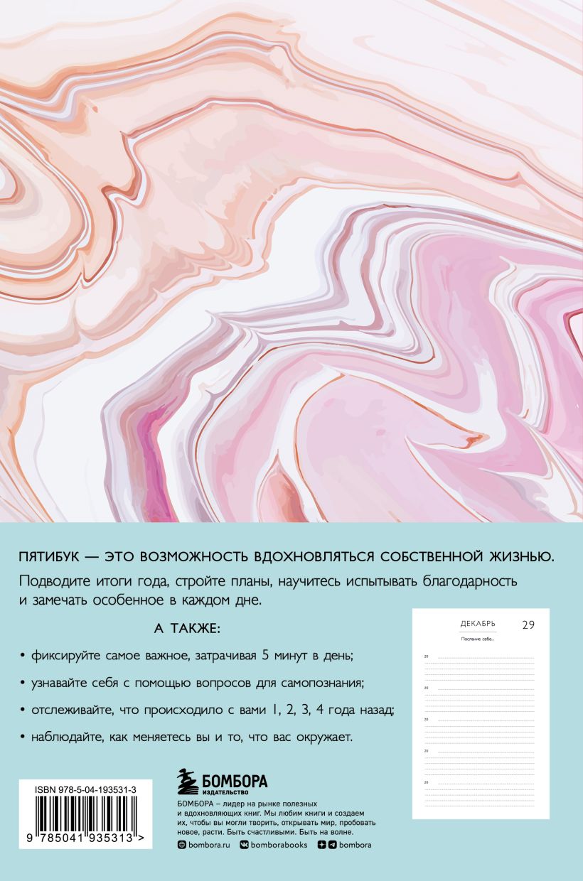 Описание книги Книга моей жизни: Дневник на 5 лет (пятибук макси, розовый мрамор):