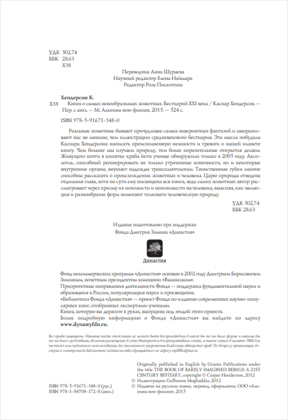 Реальные животные бывают причудливее самых невероятных фантазий и завораживают нас не меньше, чем иллюстрации средневекового бестиария. Эта мысль побудила Каспара Хендерсона написать преисполненную нежности и тревоги о нашей планете книгу.