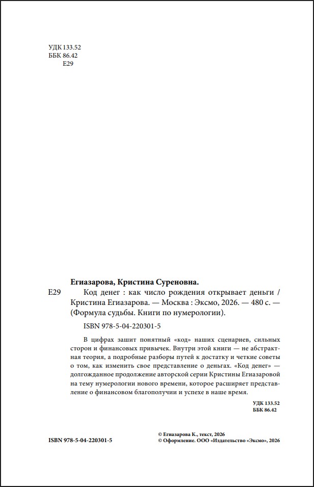 В каждой цифре скрыт уникальный «код», раскрывающий ваши сценарии, сильные стороны и финансовые привычки. Откройте секреты своего финансового успеха с долгожданной книгой Кристины Егиазаровой, автора бестселлера по нумерологии «Исходный код».